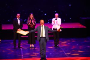 وقدم الفنان طارق عبد العزيز التكريم للفنان احمد فؤاد سليم معربا انه ضحي بالكثير من اجل المسرح وكان لي الشرف ان اقف أمامه في بعض أعماله