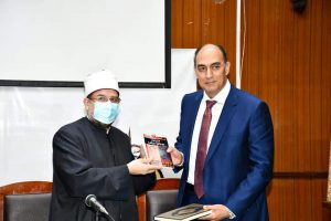 وفي ختام اللقاء أهدى معالي أ.د/ محمد مختار جمعة وزير الأوقاف كلًّا من السيد الأستاذ/ محمد الأتربي رئيس مجلس إدارة بنك مصر، والسيد العميد/ وليد السيد محمد مدير وعضو مجلس إدارة شركة فوري دهب للمدفوعات الإلكترونية نسخًا من كتاب الله (عز وجل) ، وكتاب الدولة مفهومها وتطورها ، وكتاب الشأن العام بين حرية الرأي ومسئولية الكلمة.