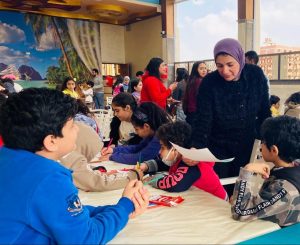 وحول مفهوم المحبة وقبول الآخرين ونشر قيم السلام المجتمعي دارت ورشة الحكي بمسرح عرائس القفاز بمشاركة ا.مرفت ابراهيم، ومارتينا عاطف من رواد مكتبة السلام، واختتمت الفعاليات بورشة رسم البهجة والسرور بالألوان على وجوه الأطفال بمشاركة مديرة مكتبة السلام ا.مرفت ابراهيم مع توزيع مجلات قطر الندى كهدية تحفيزية للتشجيع على القراءة والاطلاع.