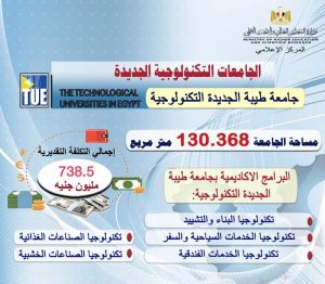 وأضاف المُتحدث الرسمي أنه تم توفير جميع متطلبات الجامعة من أثاث وأجهزة وتجهيزات المعامل والورش، وكذلك مُقومات البنية الأساسية المعلوماتية، لتتوافق مع البرامج الدراسية الخاصة بها، والتجهيز بأحدث الأجهزة اللازمة للمعامل والمراكز البحثية، والتي تتناسب مع الاحتياجات الوظيفية والتعليمية للبرامج الجديدة التي سيتم تقديمها بالجامعة، مشيرًا إلى الدور الهام للجامعات التكنولوجية في مصر في تقديم كوادر فنية مُدربة جيدًا للالتحاق بسوق العمل، فضلًا عن الشراكات الدولية التي تعقدها هذه الجامعات مع الجامعات التكنولوجية ذات الخبرة العالية في هذا التعليم، وكذلك التدريب العملي بالمصانع والشركات بالمجتمع المحلي المحيط بهذه الجامعات، تجعل خريجي هذه الجامعات قادرين على تلبية احتياجات سوق العمل المُعاصر محليًا، وإقليميًا، ودوليًا.