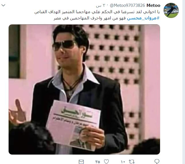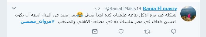 ونشر عبد الله، "كوميك" وعلق قائلاً :"وبعدين بقا فى اللى هيخطف الاجواء من ميسى دا"، وقالت رانيا :"شكله غير نوع الاكل بتاعة علشان كده ابتدأ يفوق بس بعيد عن الهزار اتمنى أن يكون أحسن هداف في مصر علشان ده في مصلحة الاهلي والمنتخب"، وغرد آخر:"ياجماعة أقسم بالله مروان محسن أفضل مهاجم داخل الصندوق ولو عندنا ظهراء جمب كويسين وبيلعبوا العرضيات صح مروان هيبىقى هداف الدوري".