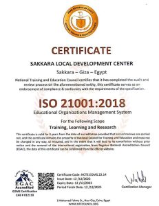 حصول مركز التنمية المحلية بسقارة على شهادة الأيزو ISO 21001:2018