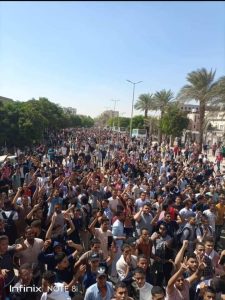 في صباح يوم ١٨ من شهر أكتوبر قام طلاب جامعه المنيا بالتظاهر في الجامعه تضامنا مع دوله فلسطين وتزمر من أفعال الاحتلال الإسرائ يلي لما فعله مساءا في مستشفي المعمداني وقتل مئات الأطفال والنساء والرجال إن ما يفعله الاحتلال ليس حربا بل هي اباده جماعيه لدوله كامله..