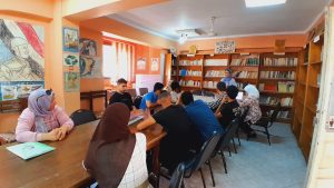 وبمكتبة البحر الأعظم واصل المدرب حمدي كامل ورشة تعليم تقنيات الخط العربى، وبدأ أولى ورش تعليم الرسم الزخرفي والتدريب على كيفية تجميع الخطوط لتكوين التصميم، وحول أهم أسباب وأركان النجاح والتفوق الدراسي، أدار تامر حنفي حوارا نقاشيا مع رواد المكتبة، بالإضافة إلى ورشة حكى عن أشهر المعالم الأثرية في مصر، قدمتها ناهد عبد اللطيف.