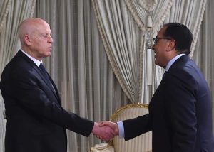 استقبل فخامة الرئيس قيس سعيد، رئيس الجمهورية التونسية، اليوم بقصر قرطاج، الدكتور مصطفى مدبولى، رئيس مجلس الوزراء، بحضور السيدة نجلاء بودن، رئيسة الحكومة التونسية.