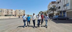 حيث تفقد أعمال الرصف والتطوير بشارع ٢٧ الذي يربط طريق المطار من بداية فرق الامن حتى شارع الكهف والتي شملت تركيب البرادورة والانترلوك و أعمدة انارة ورصف.