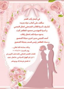 الأستاذة سناء الطاهر رئيس قسم بمجلة المصور والكاتب الصحفى الكبير الأستاذ أحمد النجمى مدير تحرير مجلة المصور متمنين لهما دوام السعادة والفرح وأن يجمع بينهما فى خير ومودة..
