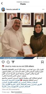 التقت سعادة السفيرة فوزية بنت عيد الله زينل سفيرة مملكة البحرين لدى جمهورية مصر العربية والمندوبة الدائمة لدى جامعة الدول العربية، سعادة السفير خليل إبراهيم الذوادي الأمين العام المساعد رئيس قطاع الشؤون العربية والأمن القومي بجامعة الدول العربية، حيث أهداها نسخة من كتابه: (على الخير والمحبة نلتقي).