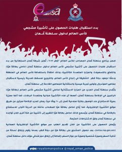 أعلنت شرطة عُمان السلطانية عن بدء استقبال طلبات الحصول على تأشيرة مشجعي كأس العالم لدخول سلطنة عمان (حاملي بطاقة هيّا) والتمتع بالتسهيلات والمزايا المتعددة للتأشيرة، ضمن برنامج سلطنة عُمان المصاحب لكأس العالم "قطر 2022".