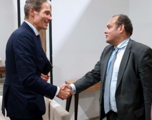 التقى المهندس أحمد سمير وزير التجارة والصناعة ب يوجين ويليمسن الرئيس التنفيذى لشركة بيبسيكو العالمية لأفريقيا والشرق الأوسط وجنوب أسيا وذلك على هامش مشاركتهما بفعاليات قمة المناخ Cop27 بشرم الشيخ حيث تناول اللقاء مشروعات وخطط الشركة التوسعية بالسوق المصرى وفرص ومقومات قطاع صناعة الأغذية والمشروبات فى مصر.