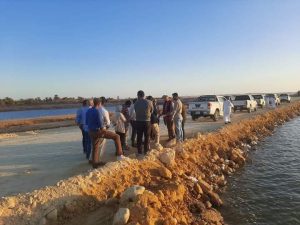 واستعرض الدكتور سويلم نتائج الزيارة التي تمت بمعرفة السيد الدكتور رئيس قطاع المياه الجوفية ممثلاً عن وزارة الموارد المائية والرى والسادة ممثلى الهيئة الهندسية للقوات المسلحة وجامعة القاهرة لتفقد بعض الأعمال المنفذة ضمن مشروع القناة المفتوحة لنقل مياه الصرف الزراعى خارج واحة سيوة وحتى منخفض عين الجنبي ، وذلك ضمن أعمال بروتوكول تطوير منظومة الرى والصرف بواحة سيوة الموقع بين قطاع المياه الجوفية والهيئة الهندسية للقوات المسلحة ، مشيراً للتواصل البناء الذى تم بين السادة ممثلي الوزارة والهيئة الهندسية للقوات المسلحة وجامعة القاهرة وأهالى الواحة للتعرف على مقترحاتهم وبحثها فنياً لتنفيذ أفضل سيناريو لإستكمال أعمال التطوير بالواحة بالشكل الذى يُسهم في تطوير المنظومة المائية وإستعادة التوازن البيئي للواحة ، حيث تم الإنتهاء من التصميمات التفصيلية للأعمال المطلوبة لإنشاء محطة رفع لنقل جزء من مياه بركة بهي الدين لمنحفض عين الجنبي ، وجاري التجهيز للتنفيذ خلال الأشهر القليلة القادمة .