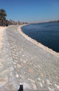 وأوضح سيادته أنه يجرى حالياً تنفيذ العديد من المشروعات لحماية وتطوير نهر النيل وفرعيه ، حيث يجرى تنفيذ كورنيش أبو شوشة بمركز أبو تشت بقنا ، والعمل على تطوير كورنيش النيل الشرقى بقنا بطول ١٥٠٠ متر ليصبح واجهة حضارية متطورة ، وتتم أعمال تنفيذ الكورنيش من خلال أرنكه الميول ووضع فلاتر من الرمل والزلط يليها أعمال الردم والدمك على طبقات كل ٣٠ سم ويتم أخذ عينات من التربة والأحجار لعمل إختبارات عليها لضمان جودتها ، وذلك طبقاً للإشتراطات والمواصفات الفنيه وحسب الدراسات البحثية المعده من معهد بحوث النيل.