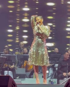 ظهرت المطربة شيرين_عبدالوهاب من حفلها في مهرجان أم_الإمارات حلقت شعرها بالكامل بعد ست ايام من اعلان طلاقها من حسام حبيب.