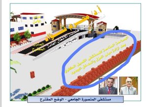 وجدير بالذكر ان الموقع المذكور تم اخذ الموافقات اللازمة لبناء مبنى ارضى و 7 ادوار على كامل مساحة الالف متر لعمل مشروع مبنى الغسيل الكلوى والقدم السكرى وتخصيص الدور الارضى منة ورش هندسية مخازن مركزية لمستشفى المنصورة الجامعى لعدم وجود مخازن مناسبة ومطابقة لاشتراطات التخزين والسلامة والصحة المهنية للمستشفى حيث ان المخازن الموجودة بالكامل تفتقر الى المساحة اللازمة والتهوية حتى وصل بهم الامر الى القاء محتويات مبنى النقاهة بالكامل المكون من 7 ادوار من اجهزة طبية واساس طبى ومكتبى وادوات الصحية من احواض وقواعد الحمامات وخلاطات والادوات الكهربية ومحتويات مبنى التعقيم من غلايات واجهزة تعقيم بعد انفجارة فى العراء فى فناء المستشفى فتم سرقة الاشياء المهمة وتم تكسير الباقى وتم بيعها كخرده حيث ان قيمة هذه الاشياء تقدر بالملايين ولانقاذ رقبة المدعو الشعراوى موسى مدير المستشفى وقتها من هذه الكارثة قام بالاستعانة بمركز الدراسات والاستشارات الهندسية الذى طلب منه تقرير فنى يفيد ان محتويات المبنى بالكامل كانت غير صالحة للعمل ويجب تكهينها وذلك بعد تركها فى العراء والامطار والسرقات دون رقيب لعدة شهور ووقع على هذا التقرير الدكتور حسام الدين صلاح مصطفى...