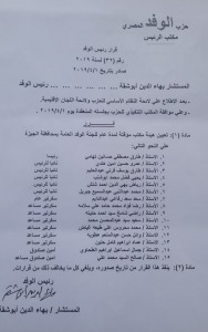 وتقرر تعيين جمال الطحاوي أميناً للصندوق بلجنة المحافظة، وصالح السيد محمد علي أميناً مساعداً للصندوق.
