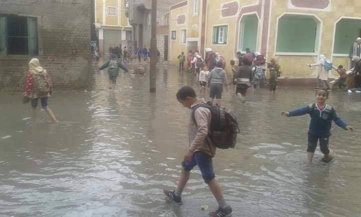وغمرت مياه الأمطار شوارع وميادين المحافظة، وتسببت في تعطل حركة المرور، وفي القرى، أغرقت المياه الشوارع، ولم يستطع المواطنون الوصول إلى أماكن عملهم.