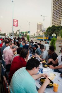 في تقليد جديد و لأول مرة نظمت السفارة الروسية بالقاهرة حفل إفطار رمضاني في قلب القاهرة بشارع التحرير بالدقي , في مائدة إفطار رمضانية إمتدت لـ 100 متر وإتسعت لـ 300 شخص , بحضور السفير الروسي بالقاهرة