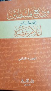 في واحد سعودي اسمه محمد بن سعود الحمد راح دار الكتب واستخرج مقالات لي كنت أكتبها في صحيفة الإنذار وطبعها في كتاب اسمه" سوانح وديع فلسطين " واهداني منه عدة نسخ لكن تخاطفها الناس وكانت مقالات أدبية وسياسية..