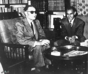 هو فلتة عصره .. كف بصره ومع ذلك تولَّي وزارة المعارف ويجيد اللغة الفرنسية وقابلته مرات ومنهم عندما زارت الأديبة الأمريكية هيلين كيلر مصر وتمت دعوتي لهذا اللقاء وجلست بجوارها وهي أديبة عمياء خرساء صماء وجاء طه حسين وهو وزير للمعارف وجلس بجواري ووقع علىَّ ترجمة اللقاء وهذه الأديبة لديها سكرتيرة تترجم لها اللقاء عن طريق "الخربشة" في خدها ومعروف أن طه حسين لا يتحدث الإنجليزية فكنت أقوم بترجمة اللقاء بين طه حسين وهيلين كيلر من الانجليزية الي الفرنسية والعربية وكان لقاءً عجيبا .