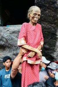 وأضاف..نواصل الاهتمام بهذا التقليد القديم حتى لا يُنسى"، ويعمل السكان على إخراج رفاة موتاهم من صناديق وينظفون عظامهم وذلك نوعًا من التكريم لأرواحهم حسب معتقداتهم