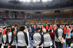 قبل خوضه ضربه البداية لبطولة الامم الافريقية لكرة اليد .. وزير الرياضة يؤازر لاعبي منتخب الفراعنة قبل لقاء غينيا