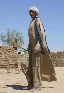 فهو يخرج ليتجول في الشوارع والحواري بنجع السماينة التابع لقرية الحلفاية قبلي التابعة لمركز الوقف شمال محافظة قنا، مرتديا جلبابًا تم تفصيله على مقاسه، حيث يصل طوله إلى 260 سنتيمترًا وذراعه 110 سنتيمترات.