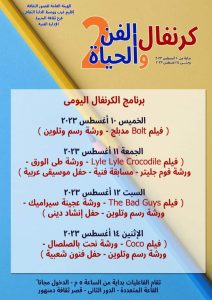 السبت 12 أغسطس فیلم The Bad Guys ورشة عجينة سيراميك ورشة رسم وتلوين حفل فرقة البحيرة للإنشاد الديني