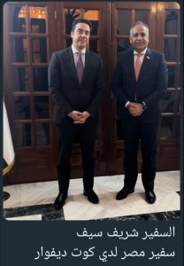 واصل وفد جمعية رجال الاعمال المصريين الافارقة برئاسة د يسري الشرقاوي رحلة العمل لمنطقة غرب افريقيا وكانت المحطة الثانية " كوت ديفوار " وعلي مدار ٤ ايام متواصلة بأبيدجان تم عقد العديد من اللقاءات مع بعض جهات ومنظمات واتحادات المال والاعمال ورجال الاعمال في مختلف القطاعات والتخصصات والتي نُسقت بالتعاون بين الجمعية والسفير شريف سيف سفير مصر لدي كوت ديفوار ، والقنصل شريف طاهر قنصل مصر لدي كوت ديفوار. ومكتب تمثيل الجمعية بالعاصمة ابيدجان .