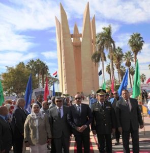 وعقب ذلك قام محافظ أسوان بوضع إكليل الزهور على النصب التذكارى للشهداء بحديقة بلازا درة النيل بحضور العميد أ.ح حامد عبد الغنى قائد قطاع أسوان العسكرى وأيضاً نائب مدير الأمن بجانب أعضاء مجلسى النواب والشيوخ والقيادات الجامعية والدينية والأمنية العسكرية وسط عروض لفرقة الموسيقات العسكرية التابعة للمنطقة الجنوبية مع تقديم العروض الفنية والوطنية والحماسية لفرق الفنون الشعبية التابعة للهيئة العامة لقصور الثقافة ، وأيضاً الشباب والرياضة وقد قدم اللواء أشرف عطية خالص التهنئة للرئيس عبد الفتاح السيسى ، ومواطنى أسوان بمناسبة هذه الذكرى العزيزة والتى تعد إحدى أهم محطات التحدى للشعب المصرى ، مؤكداً على إستمرار ومواصلة هذا التحدى والإصرار لتحقيق وإستكمال المزيد من الإنجازات والآمال والطموحات لعاصمة الشباب والإقتصاد والثقافة الإفريقية التى تشهد حالياً طفرة ونقلة نوعية للتطوير فى مختلف المجالات الخدمية والتنموية والتى تتناسب مع المكانة التاريخية والسياحية والإقتصادية والثقافية لأسوان على المستويين الدولى والمحلى ، وأشار أشرف عطية إلى أنه فى إطار توجيهات الدكتور مصطفى مدبولى رئيس الوزراء بحظر الصرف على الإعلان والدعاية والحفلات والمعارض وترشيداً للإنفاق ، والإستهلاك الحكومى فقد تقرر إلغاء جميع فعاليات الإحتفال بعيد أسوان القومى ، وإقتصارها فقط على فاعلية إيقاد الشعلة ، ووضع أكليل الزهور على الجندى المجهول ، مشيداً بالدور الوطنى لبناة السد العالى ، وأيضاً للزعيم الراحل جمال عبد الناصر الذى دشن مشروع السد ، وإستكمل الزعيم الراحل أنور السادات المسيرة بإفتتاحه ليكون بمثابة رسالة وعنواناً لمواجهة قوى العدوان ، ولتظل مصرنا الحبيبة صامدة أمام محاولات النيل من إستقرارها بتلاحم وتكاتف شعبها العظيم وجيشها القوى وشرطتها الباسلة تحت قيادة الرئيس السيسى.