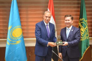 محافظ القليوبية يستقبل سفير جمهورية كازاخستان بالقاهرة ونائب منطقة أتيراو والوفد المرافق لهما
