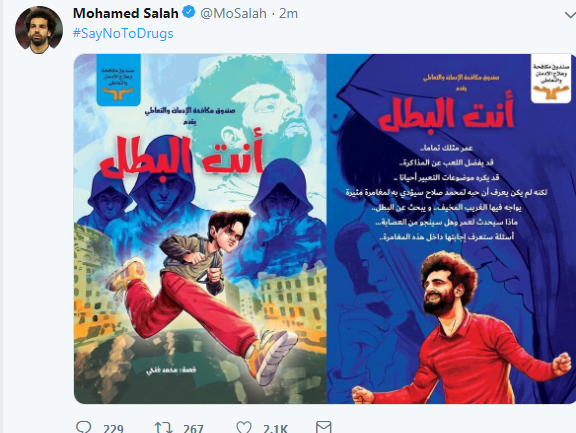 محمد صلاح يدعم حملة "أنت أقوى من المخدرات" بنشر غلاف كتاب
