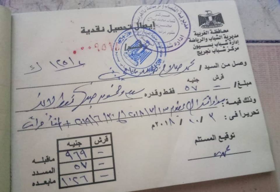 وحصل "صوت الوطن" على إيصال سداد اللاعب للاشتراك السنوى البالغ 57 جنيهًا بجانب سداد الأعوام المتأخرة والتى بلغت قيمتها 969 جنيهًا لتبلغ القيمة الإجمالية المسددة 1026 جنيها.