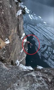 مشهد يقطع الأنفاس اجتاح وسائل التواصل الاجتماعي خلال الأيام الماضية، يوثق قفز رجل نرويجي من ارتفاع يزيد عن 40 متراً ليغوص في مياه جليدية.