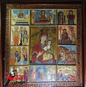 كما يضم المعرض أيقونة العائلة المقدسة والقديس يوحنا المعمدان، وأيقونة ميلاد السيد المسيح، وأيقونة البشارة والتي يظهر فيها الملاك أمام السيدة العذراء يبشرها بحملها ممسكًا بيده اليسرى فرعًا من الزهور، ويوجد طائر في الوسط.