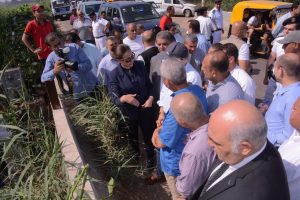وفي مستهل الزيارة قام الوزير يرافقة نهال بلبع نائب المحافظ بتفقد مغذيات ترع من فرع رشيد بمركز المحمودية قرية حلق الجمل والمنشاوية مشروع ناصر مصب ساحل مرقص