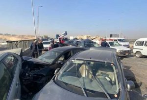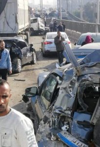وأصيب شخص إثر حادث اصطدام سيارة نقل بـ 6 سيارات ملاكى بالطريق الدائرى، مما أدى الى تباطؤ حركة المركبات في الاتجاه القادم من طريق الواحات اتجاه المريوطية، وانتقل رجال المرور الى المكان لرفع حطام الحادث.ورفع أوناش المرور، حطام الحادث من على الطريق الدائرى، وسط تواجد الخدمات المرورية اللازمة لمتابعة حركة السيارات.و الاستعانة بسيارة تابعة للحماية المدنية بالجيزة لإزالة آثار المواد البترولية من الأسفلت قبيل فتح الطريق بشكل كامل أمام للسيارات.