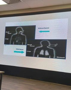 وهذه صوره توضح الفرق بين وصول الجرعات للرئه بجهاز الايروشامبر وبدون الجهاز