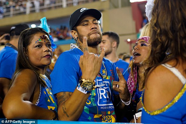 ظهر البرازيلى نيمار نجم باريس سان جيرمان الفرنسى فى احتفالات كرنفال ريو دى جانيرو، التى أقيمت مساء أمس الاثنين، مستغلا غيابه عن فريقه للإصابة.