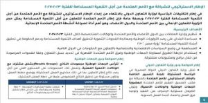 كما تأخذ في الاعتبار الاستراتيجيات الوطنية مثل الاستراتيجية الوطنية لحقوق الإنسان واستراتيجيات تنظيم الأسرة، فضلا عن رؤية الدولة للتنمية المستدامة 2030، وتعد المبادرات الرئاسية وعلى رأسها المبادرة الرئاسية للتنمية المتكاملة للريف المصري "حياة كريمة" جزءًا رئيسيًا من مستهدفات الإطار الاستراتيجي للشراكة مع الأمم المتحدة.