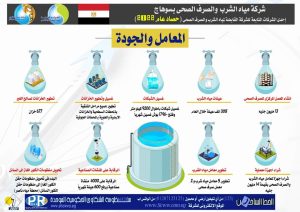 وفى مجال المعامل وجودة مياه الشرب، أوضح رئيس الشركة، أنه تم رفع وتحليل 308 ألف عينة مياه شرب وغسيل شبكات بأطوال 9200 كيلو متر وفتح 17960 بوش غسيل شهرياً، وتأهيل 5 معامل مياه ومعملين للصرف الصحى، بالإضافة إلى تطهير 677 خزان مياه شرب للغير، والانتهاء من تأسيس المعمل المركزى للصرف الصحى بقيمة 13 مليون جنيه، وشراء أجهزة معملية بقيمة 14 مليون جنيه، كما حصلت 6 معامل مياه شرب وصرف صحى على شهادة الأيزو 17025.