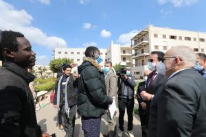 كما تبادل الوزير الحديث مع عدد من الطلاب المقيمين بالمدينة الجامعية، واطمأن على أوضاعهم وسلامتهم، وتمنى لهم التوفيق والنجاح.