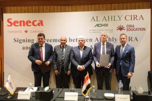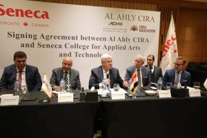 تنفيذًا للتوجيهات الرئاسية بإقامة شراكات مع جامعات دولية مرموقة، شهد د.أيمن عاشور وزير التعليم العالي والبحث العلمي فعاليات حفل توقيع مذكرة تفاهم بين كل من شركة الأهلي سيرا وجامعة سينيكا – كندا؛ لإنشاء فرعين لجامعة سينيكا الكندية في مصر، بحضور د.ديفيد أجنيو رئيس جامعة سينيكا – كندا، ود. حسن القلا رئيس مجلس أمناء جامعات بدر بالقاهرة وأسيوط، ورئيس مجلس إدارة شركة سيرا إديوكيشن، وأ.كريم سعادة رئيس مجلس إدارة شركة الأهلي سيرا للخدمات التعليمية، والسيد مارك سكاليون ممثل سفارة كندا بالقاهرة، وعدد من الشخصيات العامة في مصر وكندا.