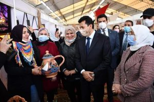 وخلال جولته بالمعرض، التقي وزير الشباب والرياضة بمجموعة من الشباب العارضين حيث استمع إلى مقترحاتهم وأفكارهم موجهاً بتقديم كافة التسهيلات والدعم لهم وبتذليل أي عقبات تواجه انشطتهم من اجل تعزيز تلك الحرف التراثية التي تتميز بها المحافظات المصرية المختلفة، وآلية تسليط الضوء عليها مما يعززها ويرتقي بها مرة أخري لتعود لسابق عهدها، موضحاً أن الهدف الأسمى لهذا المعرض هو نشر ثقافة العمل الحر لدي الشباب والتشجيع على اظهار المهارات الحرفية للصناعات اليدوية لمختلف شبابنا العاملين في مجالات الصناعات اليدوية.
