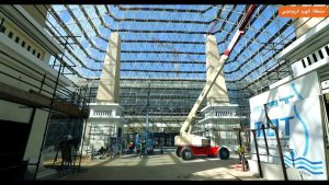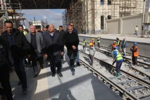 وتفقد الوزير الاعمال الجارية للإنتهاء من أعمال تشطيب وتأثيث المكاتب الإدارية وأماكن خدمة العملاء والاستعلامات كما تفقد مخطط حركة سير الركاب بالمحطة والارصفة ومقاعد انتظار الركاب وكذلك أعمال تركيب القضبان بعدها توجه الوزير لمتابعة أعمال الانتهاء من انشاء الورش المختلفة بالمحطة مثل ورشة صيانة عربات القطارات والتي تشمل 12 سكة وورشة صيانة الجرارات والتي تشمل ٦ سكك لأعمال صيانة وتجهيز الجرارات وجاري تنفيذ عدد ٢ نفق سيارات ونفق للمشاة للدخول والخروج من محور الفريق كمال عامر ولربط جراج المحطة بالمحور وعدد ٢ نفق سيارات بإتجاه شارع السودان ونفق للمشاة لربط الشارع بجراج المحطة كما تابع الوزير مخطط سير حركة الركاب سواء من المدخل الرئيسي او من الانفاق للوصول الى صالات التذاكر وتوافر السلالم الكهربائية والمصاعد لتسهيل تنقل الركاب.