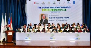 وزيرة البيئة تشارك فى النموذج الدولي لمحاكاة قمة المناخ COP28 الذى تنظمه الجامعة البريطانية بالقاهرة.