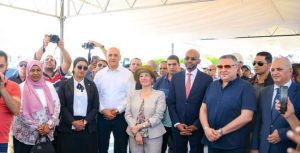 وزيرة البيئة ومحافظ البحر الأحمر بحضور ٥ وزراء بيئة من الدول العربية (الأردن - الصومال - جيبوتى - السودان - اليمن) يشهدون مراسم إطلاق أول ثلاثة مواقع غوص جديدة بسواحل مدينة الغردقة لحماية الشعب المرجانية