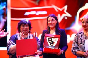 سوسن بدر تتسلم تكريم الراحلة أمينة رزق وتكريم المخرجين ناصر عبد المنعم وأحمد اسماعيل ومراد منير ومهندس الديكور فادي فوكيه واسم الراحل عبد الرحيم الزرقاني ونجلة صبري عبد المنعم تتسلم تكريمه