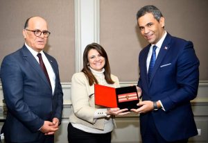 وفي ختام اللقاء أهدت السفيرة سها جندي درع الوزارة إلى السيد نصر الدين نصيبي وزير التشغيل والتكوين المهني التونسي، معربة عن شكرها لسعادته؛ لإهدائه إياها نسخة نادرة من المصحف الشريف من تصنيع مشروع المرأة المعيلة وسبحة من حجر الصندل ، كما وجه سيادته الدعوة للسفيرة سها جندي لزيارة تونس وهو ما رحبت به سيادتها واعدة بتلبية الدعوة في أقرب وقت.