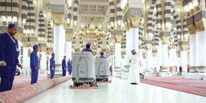 استمرارًا للجهود اليومية في خدمة زوّار المسجد النبوي وتقديم كل ما يعين وييسّر على الزائر أداءه لعبادته بكل راحة واطمئنان، كثّفت وكالة شؤون المسجد النبوي جهودها من خلال برامج أعمال النظافة والتعقيم ليظهر مسجد رسول الله صلى الله عليه وسلم بأبهى حلة له لاستقبال ضيوف الرحمن والزوّار.