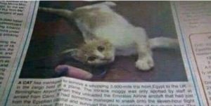 ﺍﻟقطة ﺍﻟﻤﺸﺮﺩﺓ ﻓﻲ ﻛﺎﻓﻴﺘﺮﻳﺎ ﻣﻄﺎﺭ ﺍﻟقاهرة (ﺳﺎﻓﺮﺕ ﺃﻭﺭﻭﺑﺎ، ﺗﻌﺎﻟﺠﺖ ﺃﺣﺴﻦ ﻋﻼﺝ، اعطوها ﺍﺳﻢ، ﺍﺧذﺕ ﺟﻨﺴﻴﺔ، عاشت ﻣﻊ ﺃﺳﺮﺓ إﻧﺠﻠﻴﺰﻳﺔ ﻓﻲ إنجلترا....